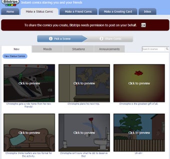W Bistrips możemy stworzyć swój własny awatar i publikować komiksy w formie statusów. Możemy też tworzyć komiksowe historie z wykorzystaniem awatarów innych osób.