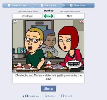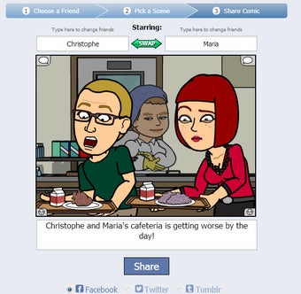 Gdy już mamy swoją postać możemy zrobić swój krótki komiks, a następnie opublikować go lub wysłać do znajomych. Istnieje też możliwość przeglądania naszych wcześniejszych komiksów oraz historyjek utworzonych przez znajomych.